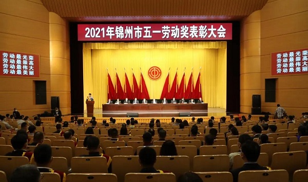 2021年锦州市五一劳动奖表彰大会4月30日上午在市工人文化宫举行,市委书记王德佳,市委副书记、代市长靳国卫,市人大常委会主任张晓光,市政协主席韩彤等市领导与受表彰的市五一劳动奖状、奖章获得者、市工人先锋号获得者,以及有关单位领导和部分职工代表共同庆祝全世界工人阶级和劳动人民的伟大节日。