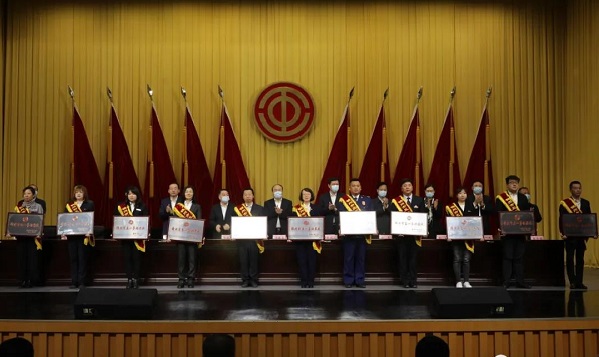 城投集团党委副书记、工会主席谭卫红同志代表集团党委参加此次大会,并上台领取“锦州市五一劳动奖状”。