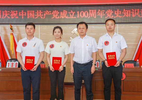 随着主持人宣布比赛开始,各位选手对答如流、胸有成竹,展示出了扎实的党史知识功底;在抢答题环节激烈抢答,答题正确率屡创新高。在风险题环节,各个选手迎难而上。把整个比赛推向高潮。经过选手们的多轮比拼,城投集团第一党支部代表队荣获一等奖,第二党支部代表队和云计算党支部代表队荣获二等奖,小额贷党支部代表队、滨海电商党支部代表队和华锦党支部代表队荣获三等奖。