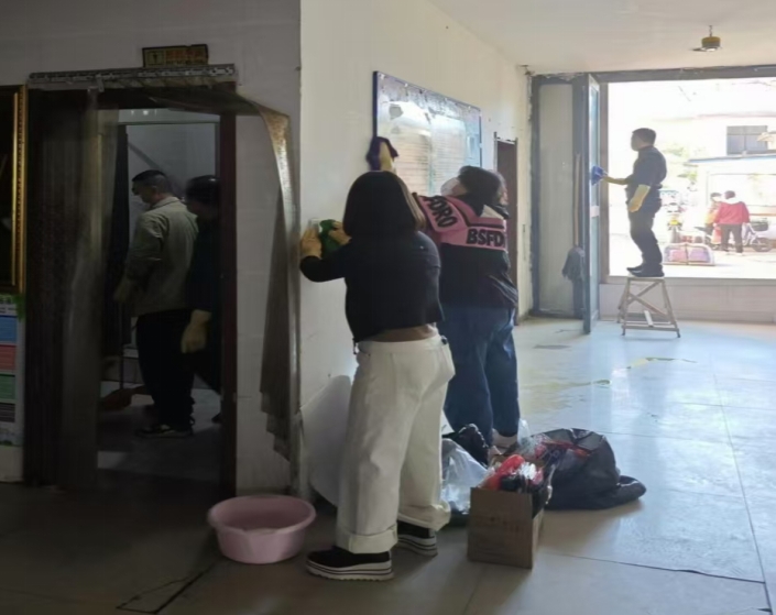 活动现场,党员同志们充分发挥模范带头作用,率先垂范,撸起袖子,拿起工具,躬下身子对五里市场的的大门、展板、卫生间等卫生死角进行彻底清除;有的党员手拿钢丝刷,站在马凳上清洁高处的水渍污渍,有的党员带着口罩在充满刺激气味的卫生间用草酸清理多年留存的污渍和卫生死角,还有党员拿抹布认真清理大门玻璃上积年的灰尘污点。大家热情高涨,干劲十足,个个奋勇争先,展现了不怕苦、不怕脏、不怕累,勇于抢挑重担的精神风貌,经过全体员工的努力,市场的环境面貌也有了新的变化。