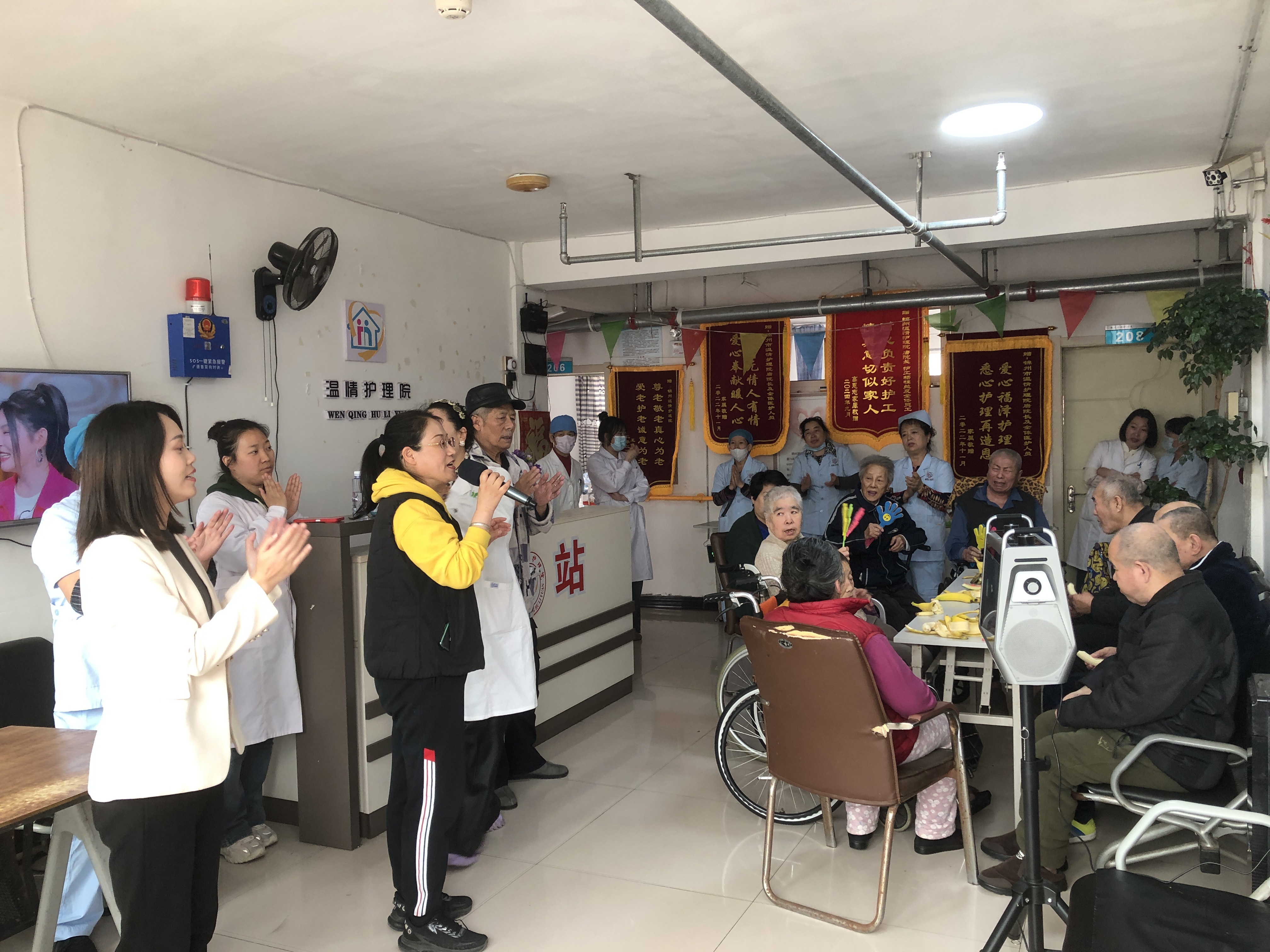 座谈会后,志愿者团队走进老人生活区,与老人们亲切互动。党员志愿者与老人共做保健手指操,欢声笑语此起彼伏。一首《没有共产党就没有新中国》,引得全场老人自发跟唱,有的老人还激动得流下泪水。党员志愿者与老人们开心的合唱经典老歌、共同起舞,活动现场洋溢着温馨、和谐、欢乐的氛围,大家用精彩的演出传递国企的温暖和祝福。同时,志愿者们还与在温情敬老院居住多年老人进行面对面交流、心贴心沟通,耐心倾听老人的诉求和需求,叮嘱老人在季节变化时注意身体。