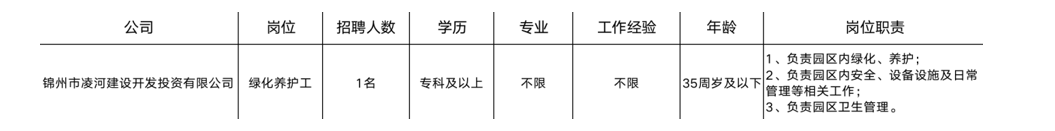 锦州市凌河建设开发投资有限公司 绿化养护工1名